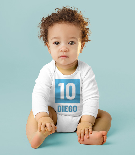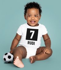 Naam of rugnummer van je kleine kicker op de romper? Dat kan! Met deze lichtblauwe print, bedruk je dit rompertje met je eigen naam en rugnummer. Onze prints zijn van de beste kwaliteit, zodat de kleur lekker lang mooi blijft. Ook na tig keer wassen. Liever een andere kleur? Bekijk de opties hieronder!